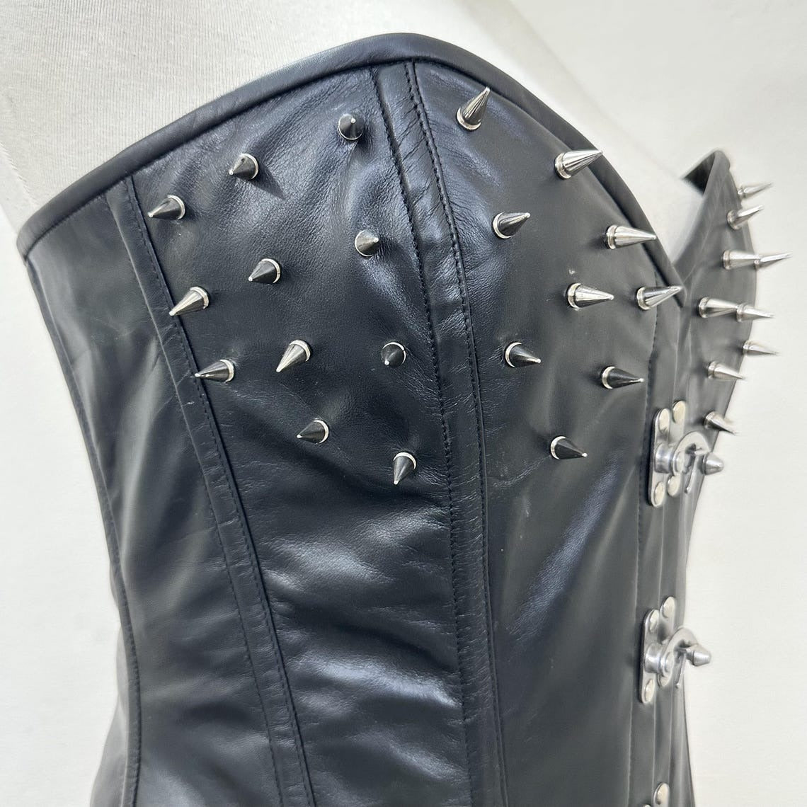 Metal spikes across bust and sides for edgy style