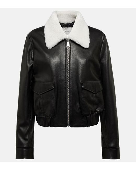 Stay warm while looking stylish with this black leather jacket for women, finished with contrasting white faux shearling for a bold yet timeless look. Crafted from genuine leather, it offers both durability and a premium feel, while the soft shearling lining provides cozy comfort in colder weather. A secure zip closure and two side pockets add practicality, making it perfect for everyday wear or chic outings. With its classic biker-inspired edge and modern contrasting design, this jacket is a versatile must-have for women who want comfort, warmth, and standout fashion.