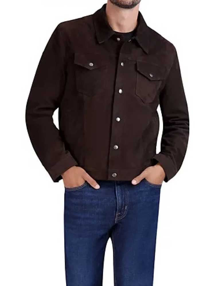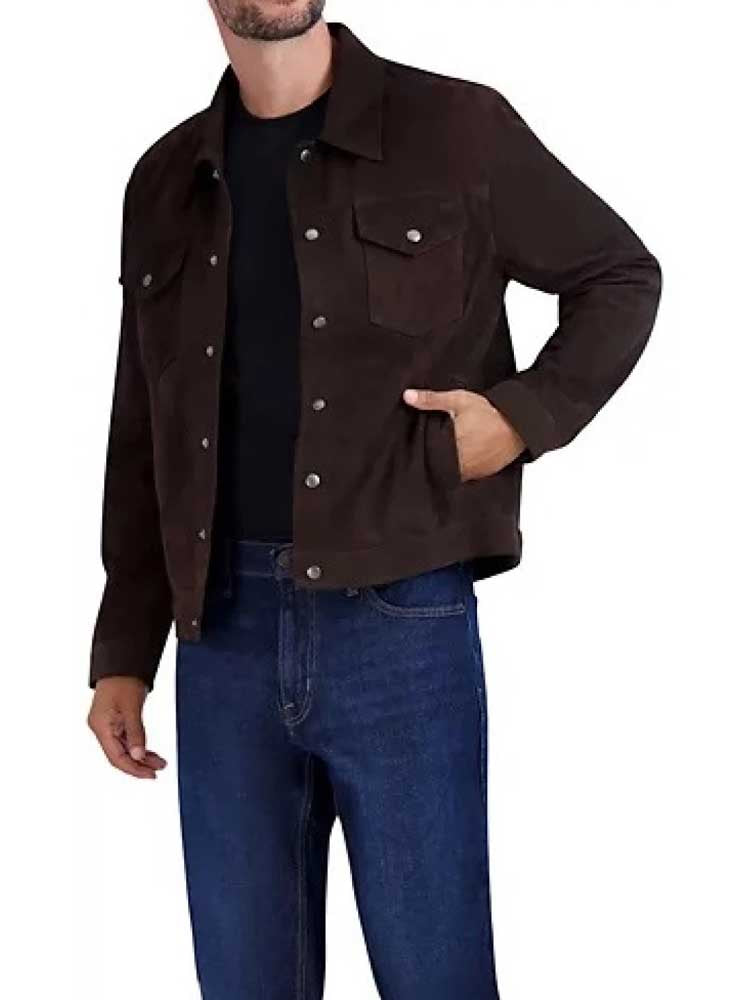 Classic Dark Brown Suede Leather Tucker Jacket for Men