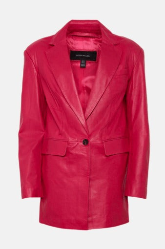 • Load image into Gallery viewer, Women Single Breasted Pink Leather Blazer