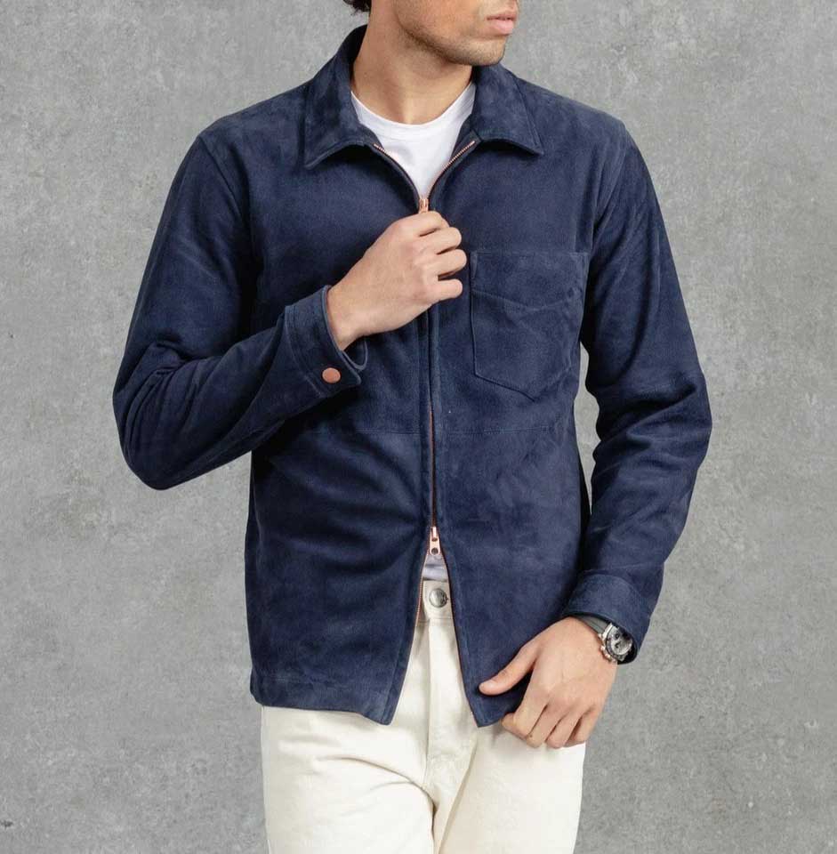 Shop the new best Blue Suede Cafe Racer Leather Jacket for Men with us today: