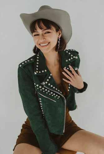 Shop the new best Green Studded Suede Leather Jacket for Women with us today