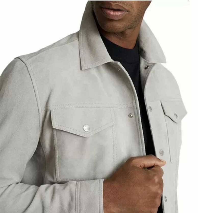 Shop the new best Grey Suede Leather Shirt Jacket for Men with us today: