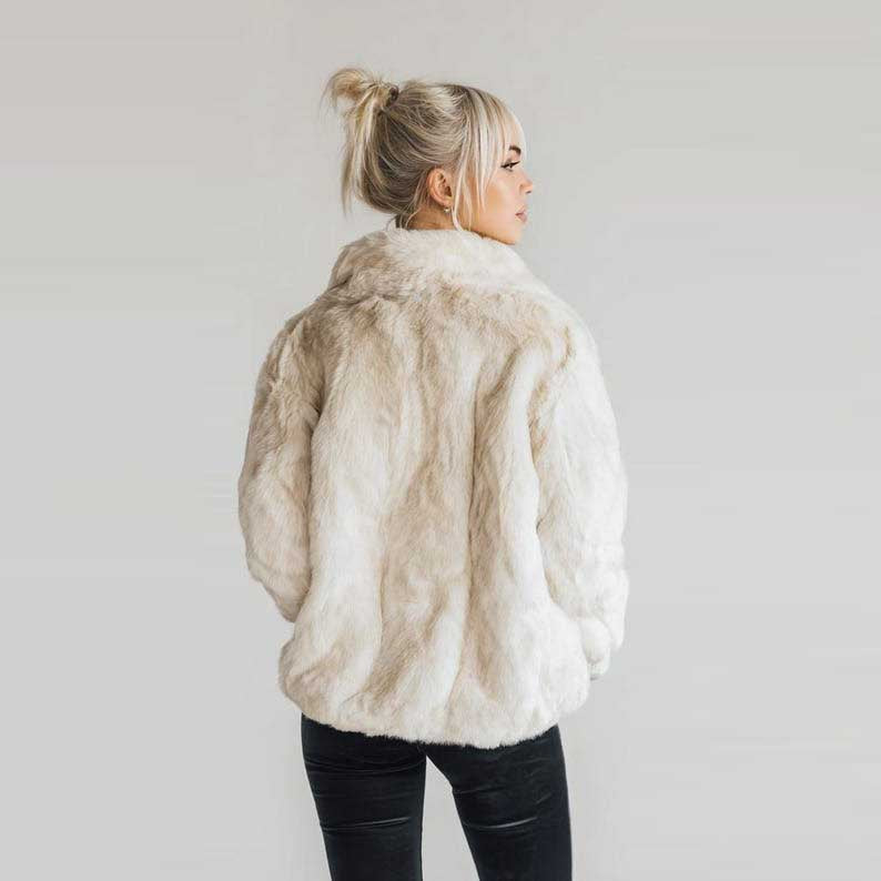 Elegant Beige Cream Mink Fur Winter Coat for Women