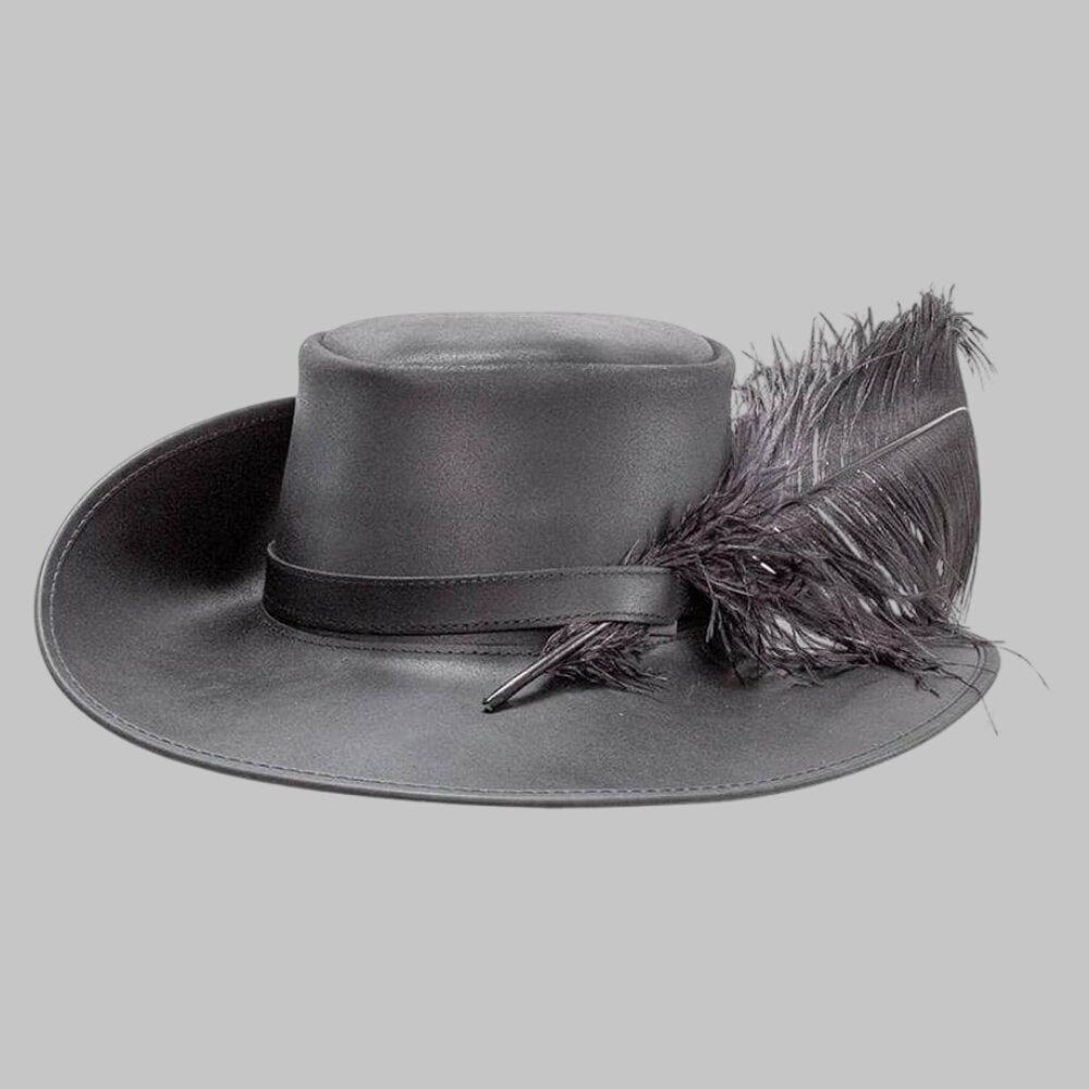 Transport yourself to an era of chivalry and adventure with this exquisitely crafted Men Black Renaissance Fair Leather Hat. Meticulously designed for historical enthusiasts and modern trendsetters alike, this hat features a classic low crown and a dramatic wide brim that captures the essence of the Cavalier and Pirate styles. Made from premium genuine leather, it boasts a supple yet durable texture that holds its iconic shape through every festival and fair. The deep black finish is perfectly complemented by a sleek leather band and a magnificent ostrich feather, adding a touch of nobility to your ensemble. Glory Store UK brings you a piece that meets the highest standards of craftsmanship, ensuring you stand out at any Renaissance event in the USA, UK, or Canada. Whether you are portraying a rogue or a nobleman, this hat provides the authentic look and superior comfort you deserve.