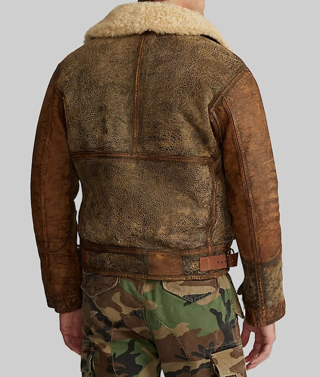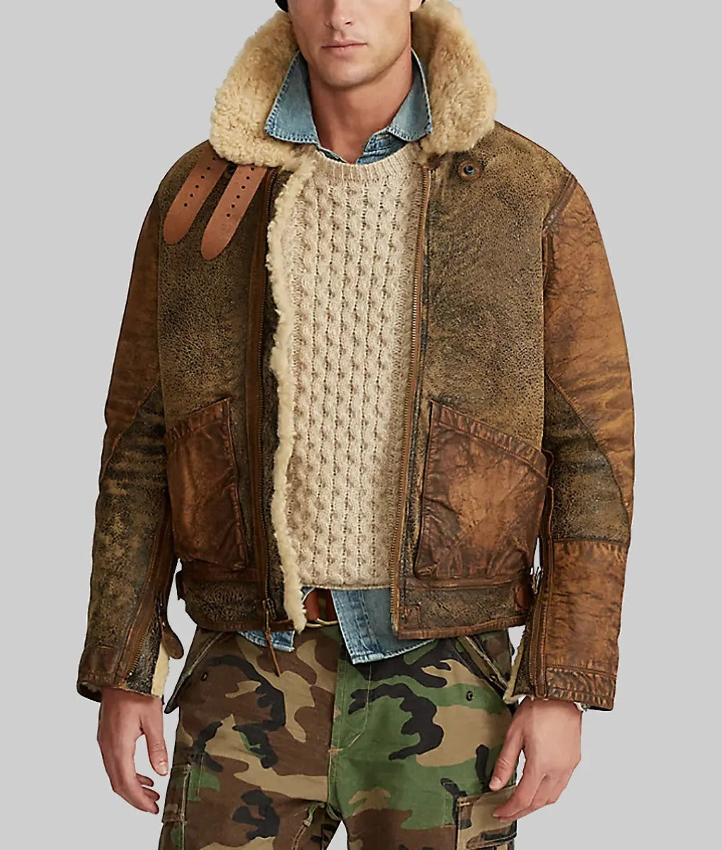 Stanley Men Brown Distressed Leather Jacket with Shearling Comfort