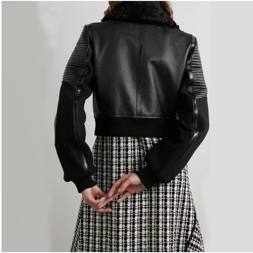 Stay warm and stylish with the Women Black Shearling Aviator Leather Jacket. Made with soft black shearling and real leather, it brings comfort, heat, and a clean modern look. The aviator style adds a bold touch, while the cozy lining makes it perfect for colder months. Its sleek shape pairs easily with everyday outfits, giving you a timeless piece that lifts your winter wardrobe with confident style and dependable warmth.