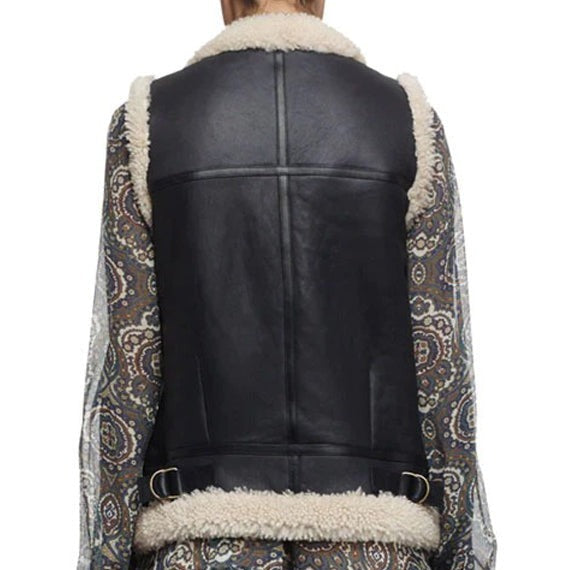 Add an edge to your wardrobe with the women black shearling biker leather vest from Glory Store UK. Made from genuine sheepskin leather, this vest combines durability with contemporary biker-inspired design. The faux shearling lining delivers warmth and comfort, while the sleek zipper closure enhances its modern style. Two functional side zip pockets add practicality without compromising the look. Perfect for layering over casual outfits or pairing with chic ensembles, this black biker vest is a versatile piece that blends bold attitude with timeless sophistication.