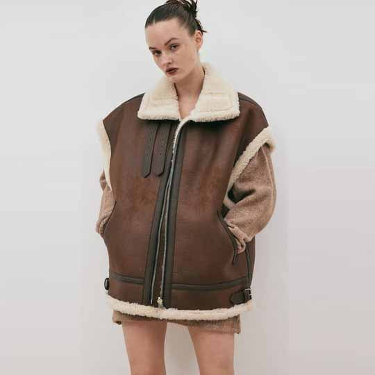 Shop the new best Women Leather Shearling Vest Brown with us today
